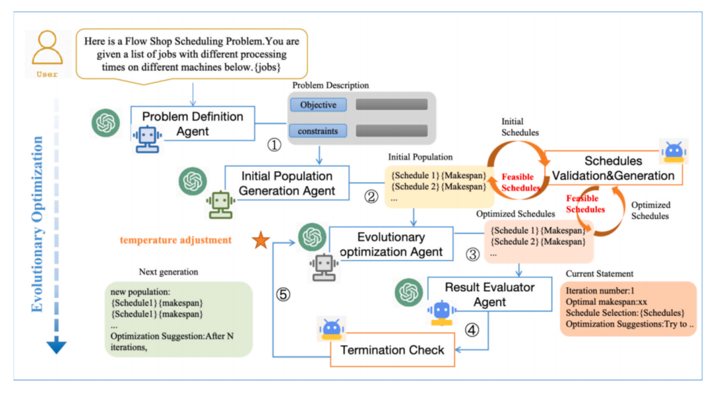 MAEF框架首次将大语言模型(LLM)与多智能体协同进化机制深度融合,突破了传统调度优化方法的瓶颈。传统方法需要依赖专家设计复杂的数学模型和算法,而MAEF通过自然语言交互,让非技术背景的一线人员也能轻松使用专业级优化工具。