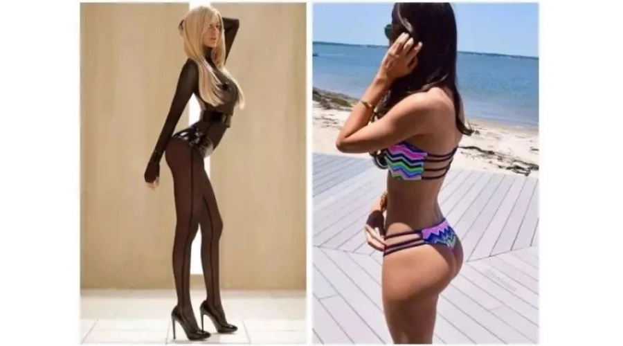 如果趴着的看不清那么我们来看站着的,图左Zahia Dehar图右Jen Selter,为了凹造型屁股是“翘”了但小腹也出来了,而Jen Selter拥有翘臀的同时她的小腹是平坦的,同时骨盆也位于身体的中线。