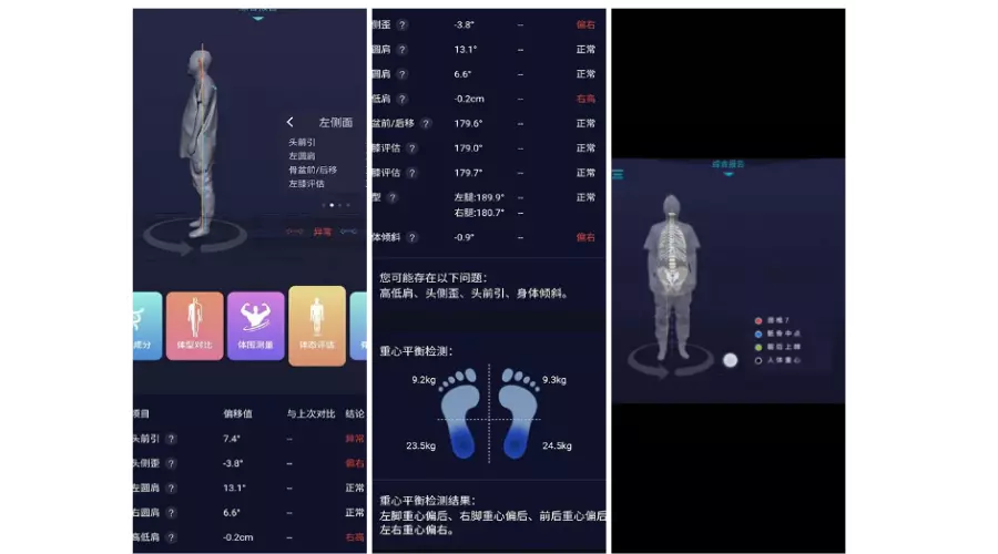 科学详细的了解每一位客户的身体状况,是每一次成功矫正的根本,只有了解了客户的健康需求,以及身体现状,才能选择对应的技术手法,对症下药。Leo回忆创业初期,客户的所有体征只能通过体态评估及手触摸脊柱的方式去做,他们针对康复前的评估有一套专业流程,触诊+体态评估+肢体功能测试+部分影像学资料,整个评估流程耗时35-40分钟。随着门店的升级与拓展,这样的评估方式就略显繁琐,并且由于人为操作部分过多,也有很多客户对于最终的评估报告产生疑问,需要引入更加科技智能的身体检测评估流程。