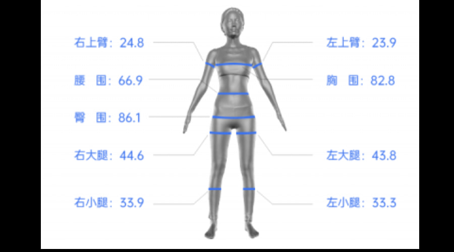 体围数据一般多用于健身塑形、儿童健康管理,目的是获取受测者身体围度数据信息,配合身体成分检测形成一套完整的由内而外的体测报告。