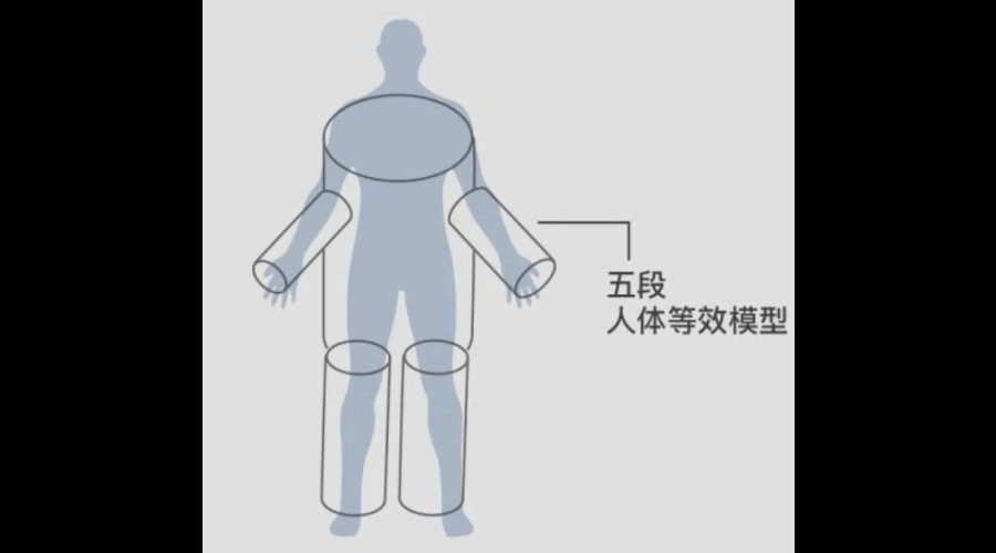 在最早的BIA测量中,粗略的将人体等效成为一个圆柱导体,获取一次电流数据。但是真实的人体情况更为复杂,四肢与躯干的肌肉脂肪分布差别很大,得到的数据误差较大。