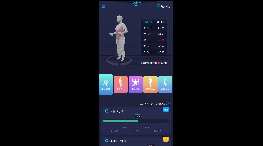 ▲维塑体测报告中的脂肪分布情况