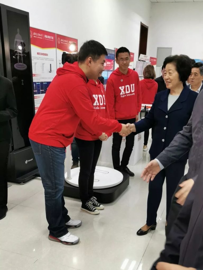 2019年10月22日上午,国务院副总理孙春兰、教育部部长陈宝生一行,来到西安电子科技大学,参观指导了维塑科技的核心产品—3D体型追踪仪。