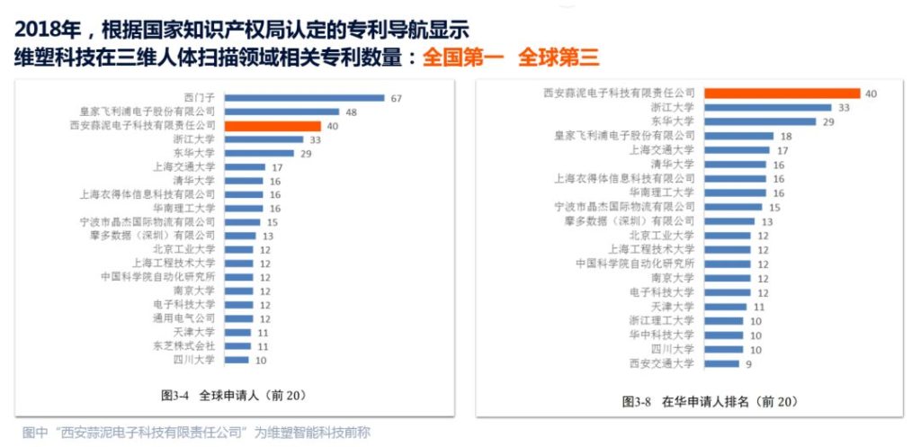 自2014年成立以来,维塑科技始终专注于三维人体成像技术的研发与应用。在2018年,维塑在三维人体扫描领域拥有百余项国家专利,获得了相关专利数量全国第一全球第三的成绩,并持有三维数字成像技术、基于深度学习的数字人体分析技术、云平台技术、BDA人体成分算法等多项核心技术。