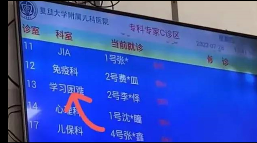 7月的某日,复旦大学附属儿科医院接收了一名特殊的患者,候诊显示屏上赫然出现了“学习困难”的挂号信息,现场其它候诊人表示从来没听说过学习困难还是一种病?