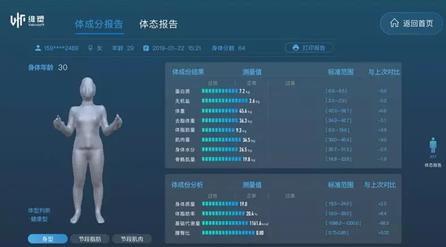 维塑Air 3D体型追踪仪,会员站上去转一个圈,就能直观地了解到自己的身体数据,体态评估功能可以帮助会员了解自己的体态问题,瑜伽馆也能更科学地为会员制定专业的瑜伽课程。维塑的体型预测功能可以让会员预见改变,在辅助会员坚持运动方面有不小的帮助。