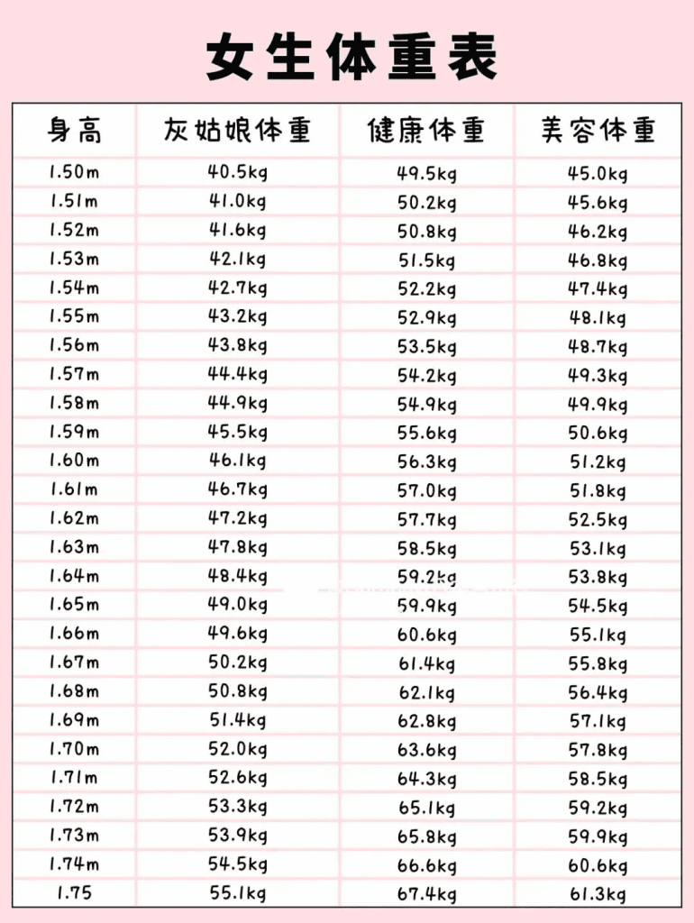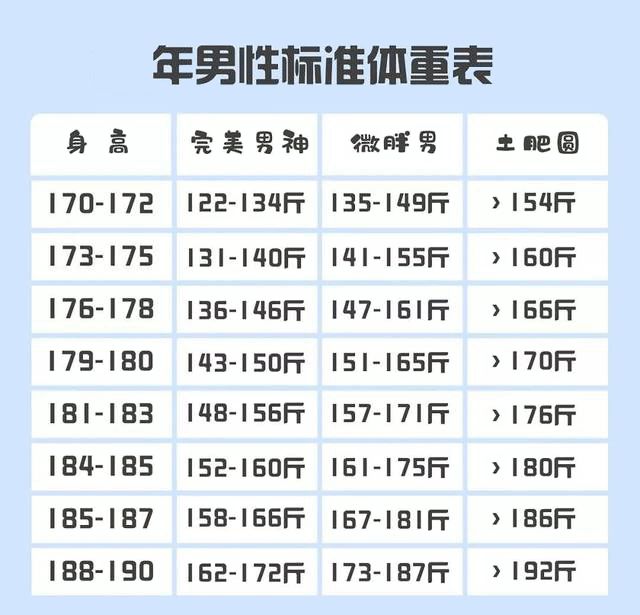 但是因为每个人的实际身体情况与健身强度有很大差别,所以标准体重仅供参考。综合身体状况还是要根据其他更细致的数据来评估。
