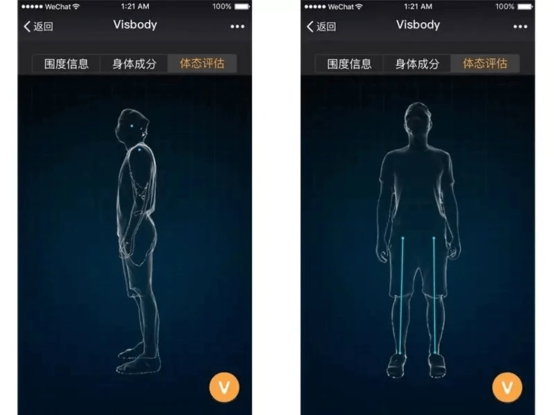 维塑在面市后不久,便重磅推出了体态评估功能。通过三维骨骼点检测方式,维塑可以为健身教练提供精准度达到毫米级别的体态判断模型图。