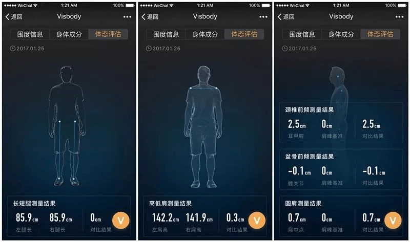 维塑充分考虑到健身房在服务健身爱好者时面临的诸多问题,将“服务理念”置于研发方向首位,在原有的功能基础上,体态评估功能将进一步提升健身房的服务能力,优化客户每一次的健身体验。并且,维塑还能通过Intel深度实感技术采集人体三维信息并生成真实高精度的360度人体三维模型,以及利用BDA算法计算出稳定的人体成分数据。
