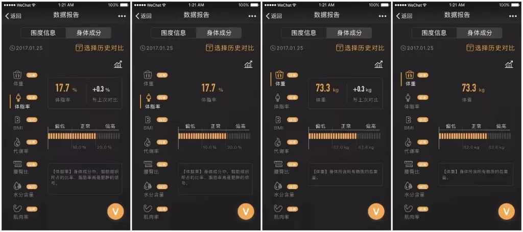 在身体成分方面,维塑也针对手机端界面做了美好升级。