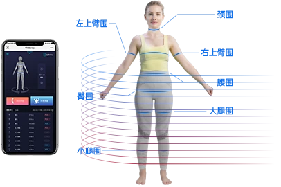 光学扫描实现身体围度自动测量,避免人工测量导致的体态与围度数据一致性较低问题。